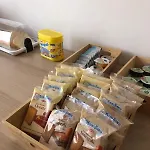בידה, שירותים נפרדים ומקלחת, וכמו כן גם קומקום חשמלי, כלים להכנת תה וקפה ומקרר כלולים.